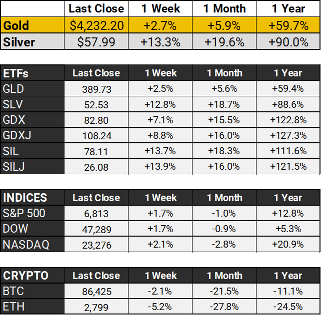 Gold's partying too, hitting $4,232 and its highest level in six weeks. If you've been positioned in precious metals this year, congratulations: you're watching history in the making.